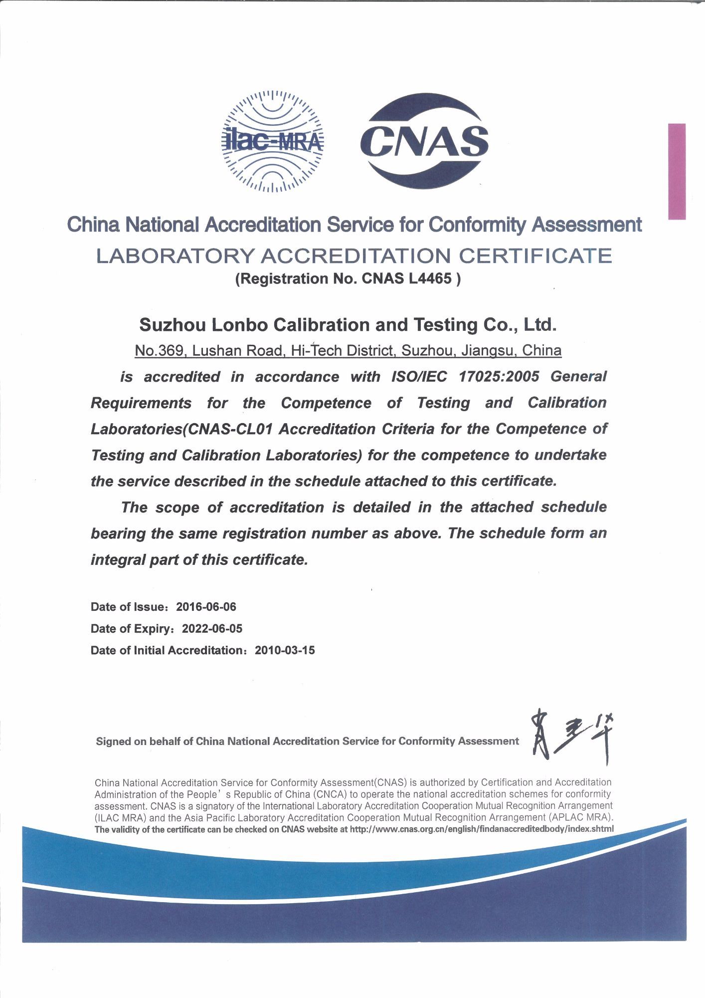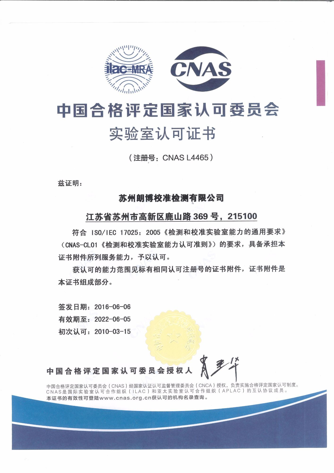 中國合格評定國家認(rèn)可委員會(huì)實(shí)驗(yàn)室認(rèn)可證書